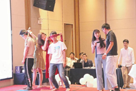 隨著活動(dòng)開(kāi)始,各位單身青年通過(guò)“擁抱另一個(gè)自己”、“愛(ài)會(huì)讓你長(zhǎng)點(diǎn)心”環(huán)節(jié),青年積極主動(dòng)的上場(chǎng)進(jìn)行了自我介紹,由男女主持人牽頭讓男生、女生分別說(shuō)出心意對(duì)象的標(biāo)準(zhǔn),使大家加深了解。游戲環(huán)節(jié)由男女組隊(duì)搭檔,齊心協(xié)力共同完成游戲,休閑娛樂(lè)的同時(shí)進(jìn)一步促進(jìn)了大家的默契,在一片歡聲笑語(yǔ)中,互有好感的男女青年們相互交換了聯(lián)系方式。