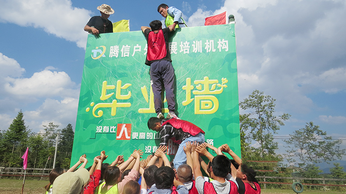 活動中,攀爬4米高的垂直畢業(yè)墻是團(tuán)隊(duì)感觸最深的項(xiàng)目,充當(dāng)“人墻”角色的隊(duì)員在咬牙堅(jiān)持著,一次又一次運(yùn)送隊(duì)友上墻,當(dāng)語言交流造成了違規(guī)之后,教練要求隊(duì)長和副隊(duì)長要接受30個(gè)俯臥撐處罰,隊(duì)長和副隊(duì)長堅(jiān)持做完了俯臥撐,并堅(jiān)定地說,“我們無悔因擔(dān)任隊(duì)長而受到的處罰,我們選擇繼續(xù)挑戰(zhàn)”,正是在團(tuán)隊(duì)的幫助和堅(jiān)持下,大家齊心協(xié)力,在確保安全第一原則下,最終完成任務(wù),順利“畢業(yè)”。