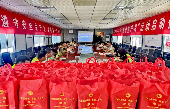 炎炎夏日送清涼,絲絲關(guān)愛(ài)入心田。8月10日,公司工會(huì)主席冷蕊帶隊(duì)深入永金高速新平(戛灑)至元江(紅光)段一分部、彌勒至玉溪高速公路勘察試驗(yàn)段象山段項(xiàng)目開(kāi)展2022年“夏日送清涼 喜迎二十大”慰問(wèn)活動(dòng)。