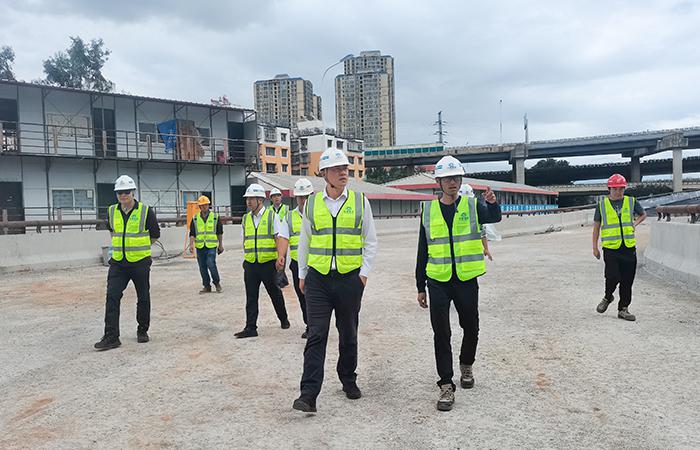 10月1日下午,公司副總經(jīng)理石俊帶隊到路橋一部昆明市綜合交通國際樞紐建設(shè)項目附屬工程菊華立交二環(huán)匝道工程項目帶班檢查,深入現(xiàn)場查看項目施工情況。