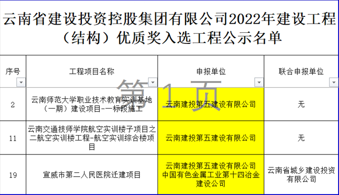 近日,云南省建設投資控股集團有限公司公布了2022年建設工程(結構)優(yōu)質獎入選工程名單,集團內本年度共有19個項目入選,公司參評的云南師范大學職業(yè)技術教育實訓基地(一期)建設項目-一標段施工、云南交通技師學院航空實訓樓子項目之二航空實訓樓工程-航空實訓綜合樓項目、宣威市第二人民醫(yī)院遷建項目三個項目均入選獲獎。