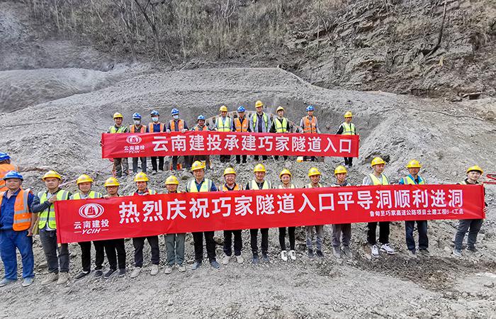 3月10日下午,鞭炮聲中,由路橋二部負(fù)責(zé)施工的魯?shù)橹燎杉腋咚俟吠两?-4工點(diǎn)巧家隧道進(jìn)口平導(dǎo)洞入口端順利進(jìn)洞,圓滿完成了3月10日平導(dǎo)進(jìn)洞節(jié)點(diǎn)。