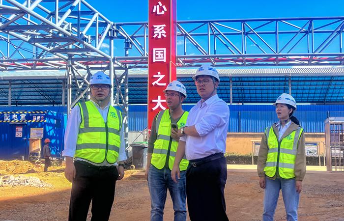 蔣璽一行深入項(xiàng)目施工現(xiàn)場(chǎng),實(shí)地檢查項(xiàng)目現(xiàn)場(chǎng)施工安全管理以及文明施工管理情況,與建設(shè)方駐場(chǎng)代表進(jìn)行交流。