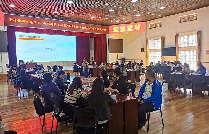 活動邀請到云南開放大學(xué)心理健康教育課程思政教學(xué)名師張倩老師,采用PPT從“心理常態(tài)與偏態(tài)”“心理問題與心理疾病”“心理咨詢”等方面結(jié)合案例分析的方式,圖文并茂、深入淺出的為職工講述了心理健康知識與調(diào)試方法。在心理賦能老師的帶動下,才加活動的職工依次開展了“繪制生命線”“繩索游戲——探索人際關(guān)系”“生涯彩虹圖——找到人生的位置”以及“案例分析”等體驗式活動,職工們逐漸敞開心扉、積極分享,在有趣的互動游戲中放松身心、充分體驗和交流,現(xiàn)場歡笑聲不斷。