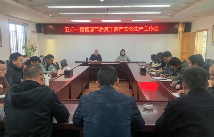 2月19日上午,五〇一直管項目部召開節(jié)后復工復產(chǎn)安全生產(chǎn)工作會,直管部領導班子成員、各科室負責人、項目經(jīng)理參會。
