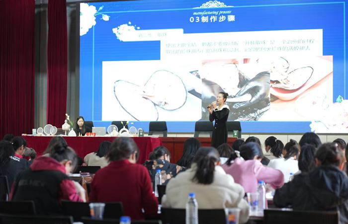 活動現(xiàn)場,老師為大家發(fā)放珍珠蚌和制作工具,指導大家開蚌取珠?!懊ず惺健遍_蚌,珍珠的大小、顏色、形狀未知,讓大家多了不少期許和驚喜,感受著小小珍珠帶來的迷人魅力。隨著一只只珍珠蚌被打開,一顆顆晶瑩透亮的珍珠映入眼簾,此起彼伏的贊嘆聲、歡呼聲彰顯著大家的激動與興奮。經(jīng)過開蚌取珠、清洗拋光、打孔制作等工序,挑選自己喜歡的首飾款式,遞工具、傳材料、搭把手……普通的小珍珠變成了一件件獨具匠心、光彩奪目的精美飾品,讓大家鑄就了專屬自己的獨一無二的溫潤與優(yōu)雅。