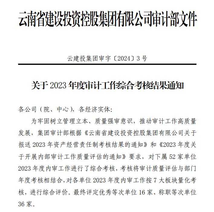 技術支持: 方森科技近日,集團審計部發(fā)布了《關于2023年度審計工作綜合考核結果通知》,考核將審計質量評估與部門年度考核相結合,公司獲評“優(yōu)秀”等次。