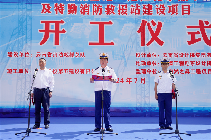 云南省消防救援總隊黨委副書記、總隊長馬濤,黨委書記、政治委員王星,集團公司黨委書記、董事長陳祖軍,云南省消防救援總隊黨委委員、副總隊長楊瑞新、鞏向海,云南省設計院集團有限公司副總經(jīng)理普柬出席開工儀式。儀式由馬濤主持。