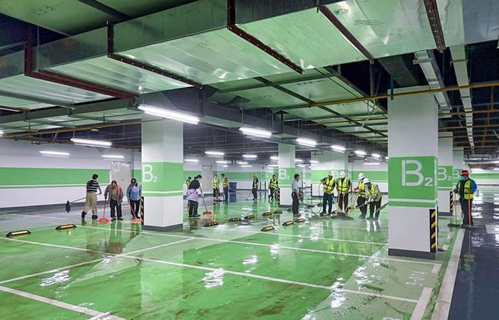 地下停車場(chǎng)作為小區(qū)及周邊基礎(chǔ)設(shè)施的重要組成部分,不僅是車輛停放的場(chǎng)所,也是后期工程移交的關(guān)鍵區(qū)域,其環(huán)境狀況直接關(guān)系到居民的生活質(zhì)量和工程移交的順利進(jìn)行。目前,地下停車場(chǎng)二層存在積塵積灰、雜物堆積、地面臟污等問題,影響了停車場(chǎng)的使用體驗(yàn)和整體形象。