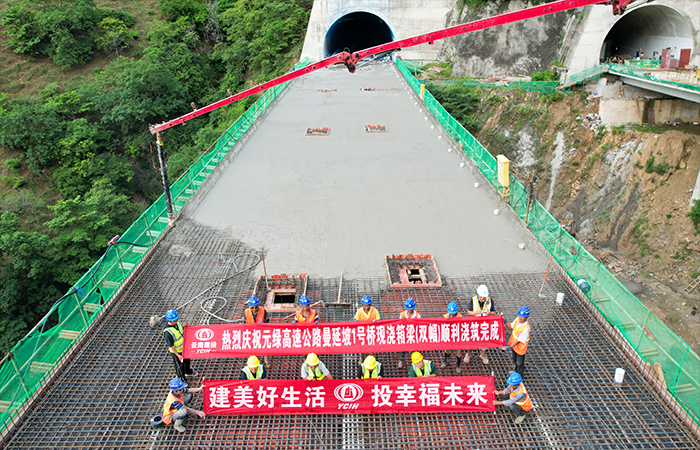 8月27日,由公司市政路橋四部負(fù)責(zé)施工的元綠高速公路土建二分部曼延坡1號中橋現(xiàn)澆箱梁頂板混凝土澆筑任務(wù)順利完成,轉(zhuǎn)入梁體養(yǎng)護及橋面鋪裝施工階段。