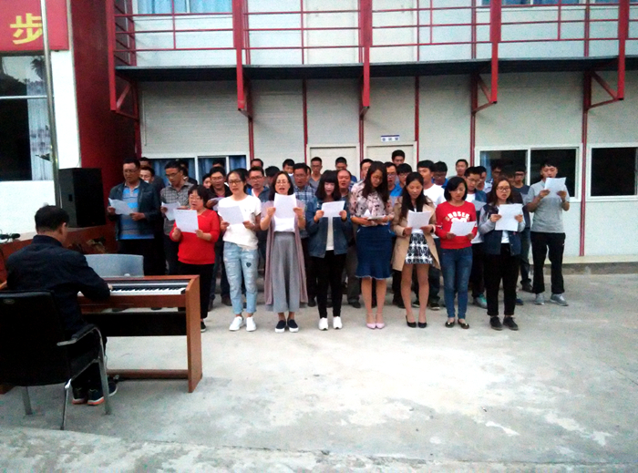 技術(shù)支持: 方森科技 5月5日,香麗路項(xiàng)目部駐地處熱鬧極了,只見公司副總工程師楊洪彩坐在電子琴前彈奏著熟悉的旋律,大家整齊地站在一起,挺直腰桿唱響《建投之歌》,迎來了陣陣掌聲。