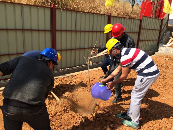 “你挖坑來、我放樹;你埋土來、我澆水”,3月13日,公司香麗項目部三工區(qū)駐地的植樹活動正在熱火朝天地進行著。