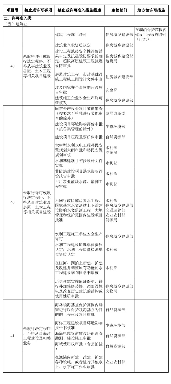 在2019版《市場準入負面清單》中,與建筑業(yè)相關的事項與規(guī)定有: