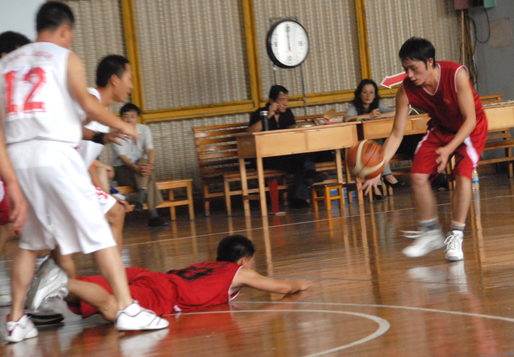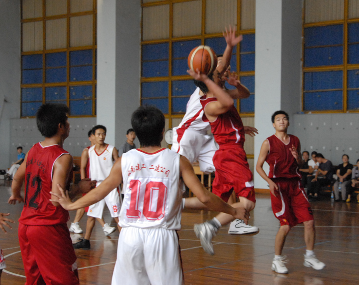 開賽后,他們同心協(xié)力,一度以17比9領(lǐng)先,逼對(duì)方換上了主力隊(duì)員。雖然此后形勢(shì)急轉(zhuǎn)直下,比分被對(duì)方反超,但五建上場(chǎng)隊(duì)員們?nèi)匀σ愿?,頑強(qiáng)拼搏,絕不放棄. 對(duì)方由于有10多名隊(duì)員輪換,而五建上場(chǎng)的6名隊(duì)員基本無法輪換,可是直到終場(chǎng),你從他們身上看不到一絲一毫的疲憊,看不到一丁一點(diǎn)的懈怠。雖然觀眾不多,雖然吶喊助威之聲稀少,雖然是到了體力極大消耗之后的下半場(chǎng),他們依然保持高昂的斗志。無論前場(chǎng)后場(chǎng),他們都步步緊逼,不放過一個(gè)機(jī)會(huì)、不放棄每個(gè)球權(quán),個(gè)個(gè)全力拼搏,人人都被汗水濕透了全身。雖說最終以幾分之差告負(fù),但是體育的精神,頑強(qiáng)的拼搏,被他們作出了實(shí)實(shí)在在的演繹。奉獻(xiàn)給觀眾的,是依然精彩的比賽。