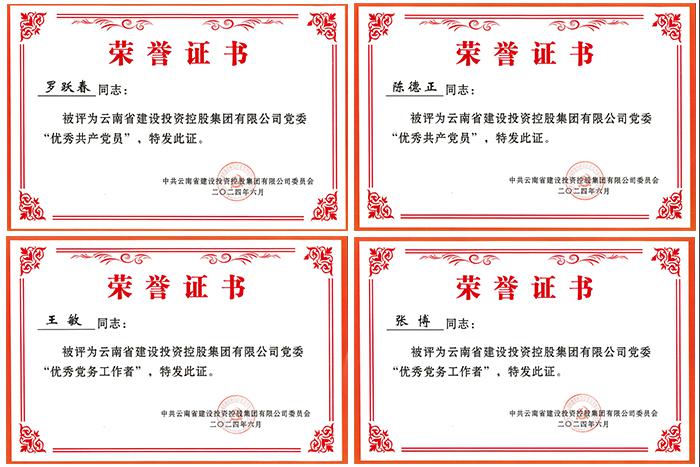熱烈祝賀!公司4名個(gè)人榮獲集團(tuán)“兩優(yōu)一先”表彰