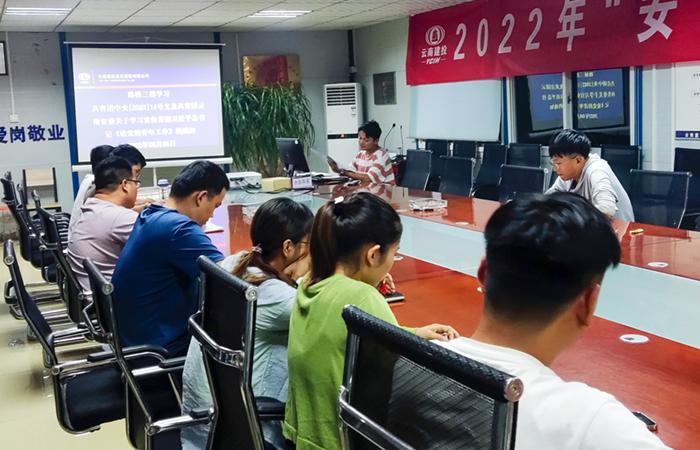 8月5日晚,路橋三部組織全體共青團(tuán)員及青年職工,在永金高速一分部項(xiàng)目部會(huì)議室學(xué)習(xí)共青團(tuán)中央[2022]14號(hào)文及共青團(tuán)云南省委關(guān)于學(xué)習(xí)宣傳貫徹習(xí)近平總書記《論黨的青年工作》的通知。會(huì)議深刻領(lǐng)悟團(tuán)中央“深刻認(rèn)識(shí)《論黨的青年工作》的重大意義,深刻領(lǐng)會(huì)《論黨的青年工作》的豐富內(nèi)涵,學(xué)懂弄通做實(shí)《論黨的青年工作》的核心要義”及團(tuán)省委“深入學(xué)習(xí)領(lǐng)悟,廣泛宣傳教育,抓好貫徹落實(shí)”的文件精神。同時(shí),摘選習(xí)近平總…