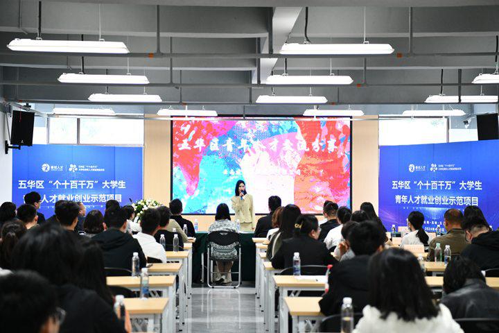 公司職工在五華區(qū)“個(gè)十百千萬(wàn)”大學(xué)生青年人才就業(yè)創(chuàng)業(yè)示范項(xiàng)目發(fā)布會(huì)進(jìn)行宣講