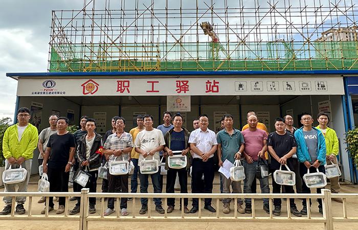 8月15-17日,第七直管項(xiàng)目部工會(huì)先后到云南藝術(shù)學(xué)院、輕紡職業(yè)學(xué)院等在建項(xiàng)目開展“工會(huì)溫暖進(jìn)萬家”送清涼活動(dòng),為堅(jiān)守項(xiàng)目一線的職工送去小風(fēng)扇、防曬袖套、清涼油、花露水等“清涼大禮包”?;顒?dòng)中,直管部工會(huì)主席向一線職工講解夏季防暑降溫的小常識(shí),分享預(yù)防蚊蟲叮咬的小妙招,囑咐大家要做好防暑降溫工作,合理安排好高溫工作時(shí)間,注意自身健康,謹(jǐn)防高溫中暑。要求項(xiàng)目部要把健康安全放首位,注意食堂衛(wèi)生、菜品?!?