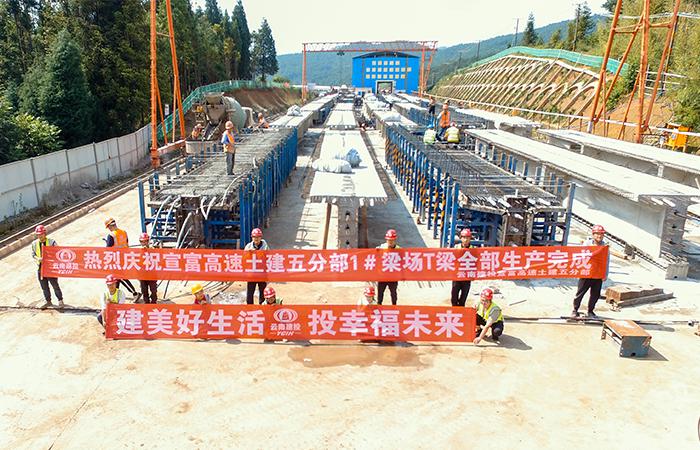 宣富高速公路項(xiàng)目五分部1#梁場(chǎng)預(yù)制T梁全部生產(chǎn)完成