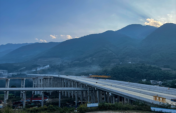 12月11日下午,隨著D匝道最后一片30米箱梁吊裝成功,永金高速一分部達(dá)哈樞紐立交全部梁板架設(shè)完成,項目建設(shè)取得階段性進(jìn)展,為后續(xù)通車奠定了堅實基礎(chǔ)。達(dá)哈樞紐立交自首片梁板架設(shè)以來,項目部克服工期緊、任務(wù)重、場地受限、雨水多等各種不利因素,加強(qiáng)現(xiàn)場施工生產(chǎn)組織,強(qiáng)化安全質(zhì)量管控,在梁板運架過程中,嚴(yán)格按規(guī)范施工,確保整個架梁過程安全可控,圓滿完成了達(dá)哈樞紐立交既定施工節(jié)點目標(biāo)。達(dá)哈樞紐立交的順利貫…