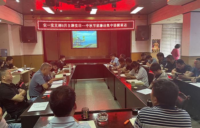 9月7日上午,第一安裝直管項目部黨支部組織二線全體職工及在昆項目經(jīng)理開展中秋節(jié)前集中廉潔提醒談話,共計27人參加。黨支部書記在會上帶領(lǐng)大家學(xué)習(xí)了《中國共產(chǎn)黨紀律檢查委員會工作條例》,為參會的班子成員、各科室負責(zé)人及項目經(jīng)理,提一提醒、敲一敲警鐘,切實增強大家廉潔自律、拒腐防變、克己奉公的規(guī)矩意識、紀律意識和制度意識,努力營造風(fēng)清氣正的節(jié)日氣氛。最后,黨支部書記提了三個要求并與大家共勉:一提高認識,…